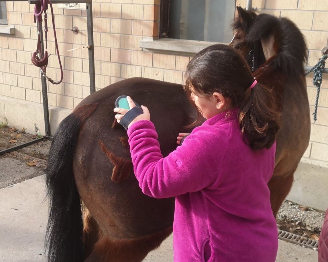 Wir tauchen gemeinsam in den Alltag auf dem Hof ein. Die Kinder dürfen die Ponys ausgiebig striegeln, kuscheln und sie für das Reiten vorbereiten. Es geht um die Freude am Tier und das ehrliche Erlebnis in der vertrauten Umgebung.